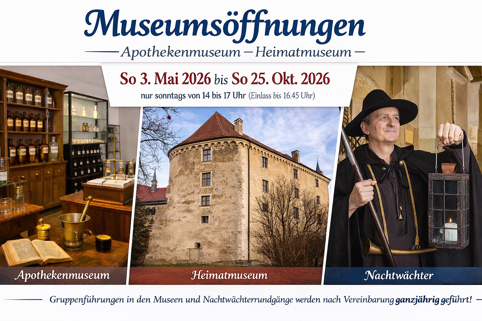 Zu den vielfältigen Aufgaben des Vereines gehören aber auch Orts-/Nachtwächterrundgänge, Literaturabende, Sonderausstellungen und Kinderveranstaltungen.