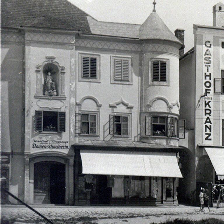 Questa casa è una delle più belle del posto e presenta una storia molto movimentata: il nucleo gotico dell’edificio risale al XV secolo, l’Erker piatto collocato sopra all’ingresso sud è di epoca rinascimentale, mentre la facciata barocca con l’Erker bombato è stata trasformata nel 1736.
