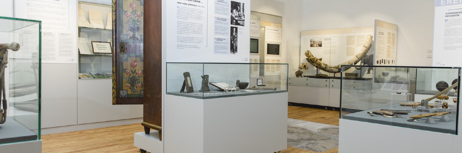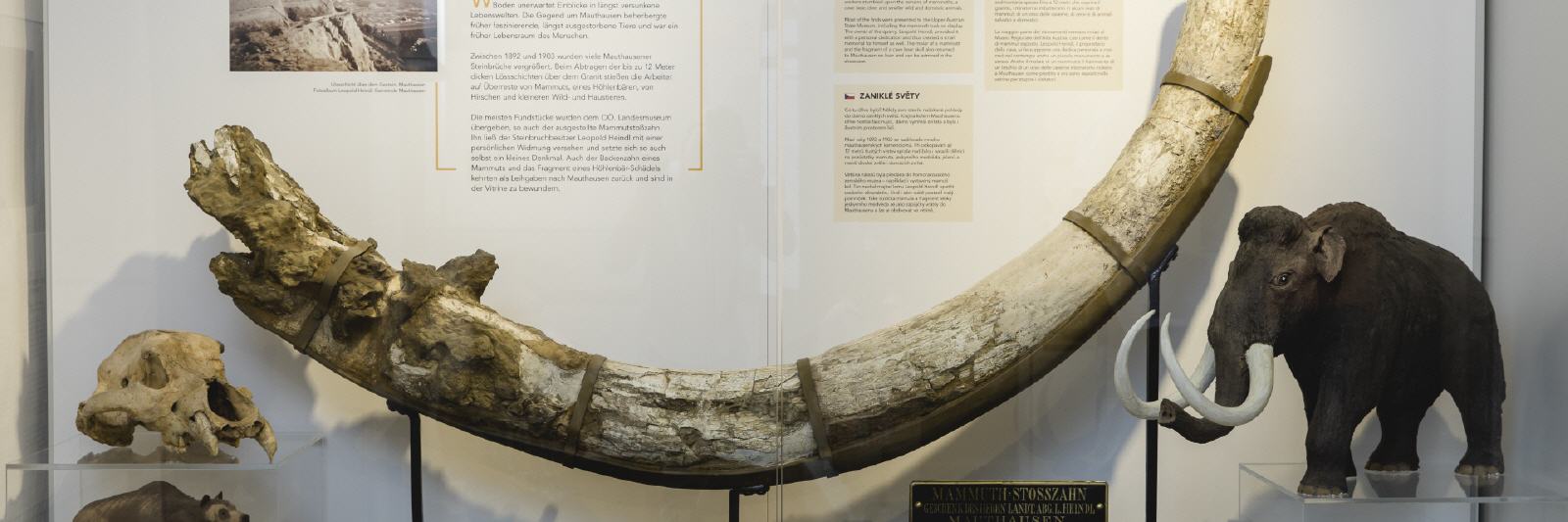 Der erste Raum präsentiert die Highlights der Sammlung inForm von Themengruppen–von den spektakulären archäologischen Funden aus den Steinbrüchen wie dem Mammutzahn über die prekäre Nachbarschaft