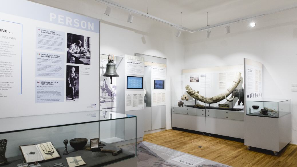 Das mehrsprachig gestaltete neue Heimatmuseum (rechts - der Original Mammutzahn)