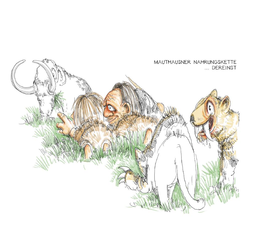 Denn während der letzten Eiszeit vor ca. 100.000 Jahren bis Ende der Altsteinzeit vor ca. 12.000 Jahren war unsere Gegend nur eine karge, kalte Steppenlandschaft, in der die Ungetüme dieser Zeit, Riesenhirsche, Auerochsen, Wollhaarnashörner, Höhlenbären und Mammutsheimisch waren. Wärmere Perioden und kleine Eiszeiten wechselten sich vorerst ab, aber tendenziell wurde das Klima immer wärmer. Ein breiter Fluss, später ‚Donau’ genannt, formte am Südrand der „böhmischen Masse“ (Granit) mit seinen vielen Nebenarmen eine urtümliche Flusslandschaft und die begleitenden dichten Mischwälder an beiden Uferseiten bildeten mit der Zeit einen richtigen Urwald.